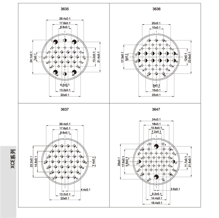 XCE系列圓形電連接器為避免外形相同的連接器間的諷插。有五種健位可供選擇